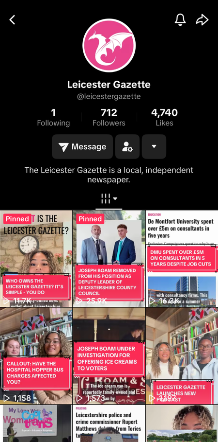 I turn articles into short-form videos for the Leicester Gazette TikTok, Instagram Reels and YouTube Shorts. I oversee all of the Leicester Gazette social media accounts, including moderating comment sections and creating media-specific content. I have experience editing on Canva and CapCut.
